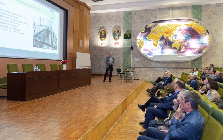 На секции «Морские геологические и ресурсные исследования» (сопредседатели к.г.н. Александр Владимирович Егоров и главный специалист Роман Александрович Ананьев) были рассмотрены актуальные вопросы методики освоения ресурсов континентального шельфа и дна Мирового океана. Обсуждались вопросы организации и проведения комплексных экспедиционных исследований, в том числе гидрографических работ по определению и обоснованию внешней границы континентального шельфа России в Северном Ледовитом океане. Несколько докладов было посвящено исследованиям современных опасных природных процессов на шельфе: в особенности связанных с разложением подводных залежей газовых гидратов. Также были представлены результаты геохимических и гидрохимических исследований морей России, затронуты методические аспекты обработки и интерпретации сейсмологических данных. Рассмотрены достижения науки в области морской сейсморазведки и геологоразведки, а также другие современные методы исследований акваторий различными способами. Необходимо отметить, что объединение учёных различных направлений способствует научному взаимодействию между специалистами, обмену методическими подходами, что содействует появлению новых идей и решений для проведения дальнейших исследований, в том числе междисциплинарных.