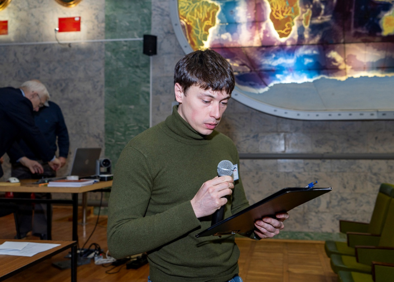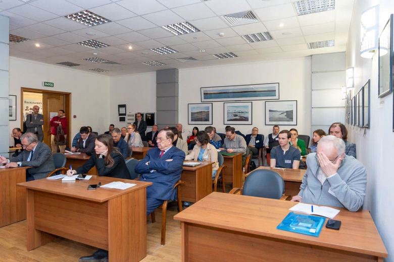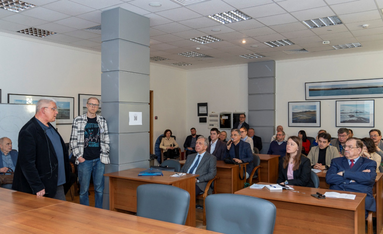 На секции «Гидрофизика» (Председатель к.ф.-м.н. Дмитрий Ильич Глуховец) в рамках трёхдневной программы было представлено 34 устных доклада, охвативших широкий спектр тем: от многолетней изменчивости климата и механизмов теплообмена в полярных регионах до современных технологий мониторинга морской среды. Среди климатических исследований следует выделить использование метода эмпирической модовой декомпозиции для прогнозирования температурных трендов, а также уточнение моделей теплообмена на основе данных буев Арго. В области гидродинамики основное внимание уделялось изучению вихревых структур и турбулентности, включая результаты судовых микроструктурных измерений в Арктике. Ряд работ был посвящён лабораторному моделированию динамики вихревых систем. В области дистанционного зондирования предложены подходы к классификации прибрежных вод, методы обнаружения цветений фитопланктона в толще морской воды и применение искусственных нейронных сетей для идентификации вихрей на спутниковых снимках. Обсуждались акустические характеристики верхнего слоя моря, в том числе разработка систем когерентной подводной связи для шельфовых зон с резким перепадом глубин. Значительная часть исследований была сосредоточена в Арктике. В частности, для этого региона представлены данные о короткопериодных внутренних волнах и колебаниях уровня моря. Третий день секции практически полностью был посвящён исследованиям морских течений. Также он включал доклады по экологическому мониторингу, в частности, оценке распространения загрязнений. Представленные работы отразили междисциплинарный характер современной океанологии, объединив разработку аппаратуры, натурные измерения, лабораторные эксперименты и моделирование для решения актуальных климатических и экологических задач различных пространственных и временных масштабов.